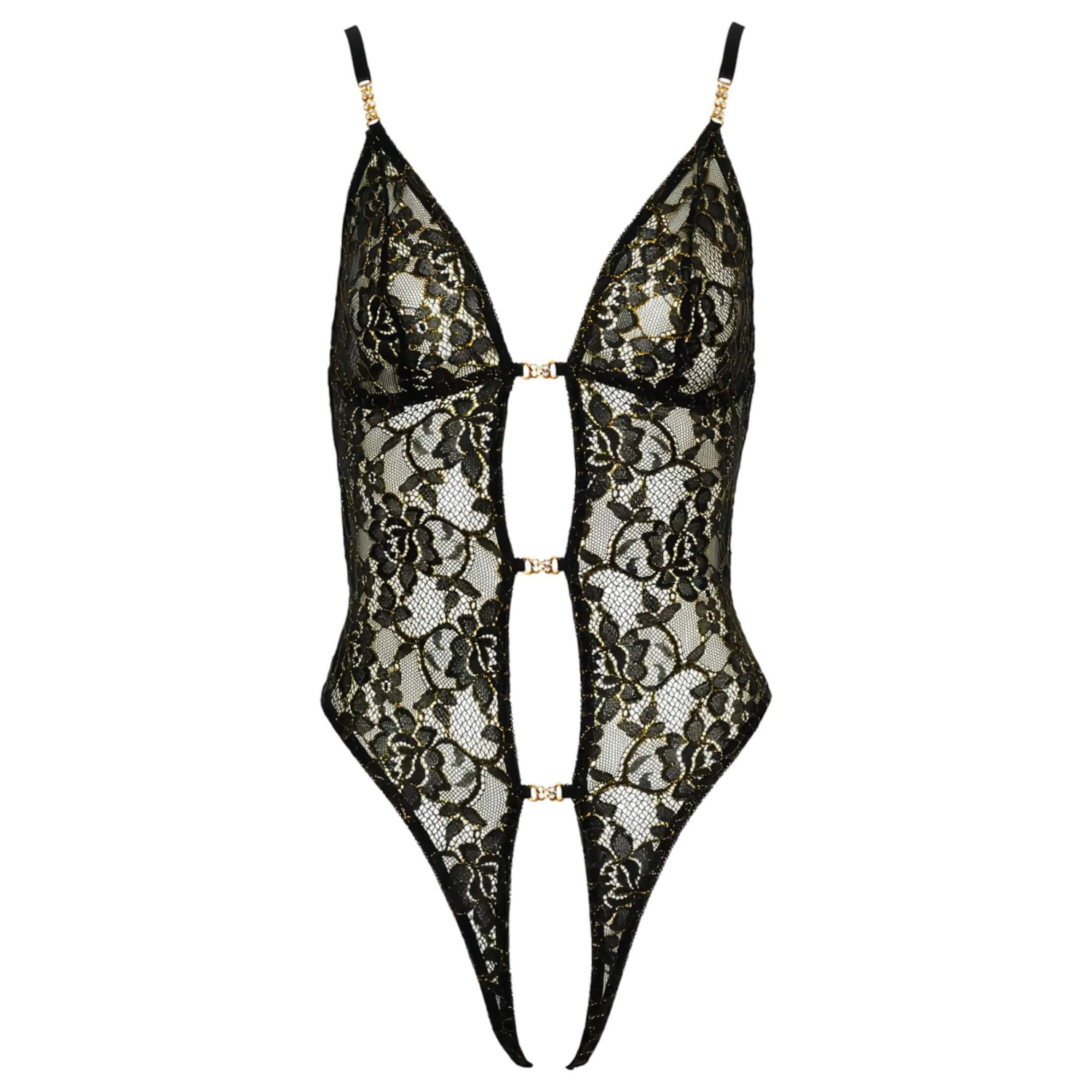 Atvērts ķermenis ar zelta dekoru - Abierta Fina atvērtais mežģīņu ķermenis ar strasītiem ir spožuma un erotiskuma perfekta kombinācija!