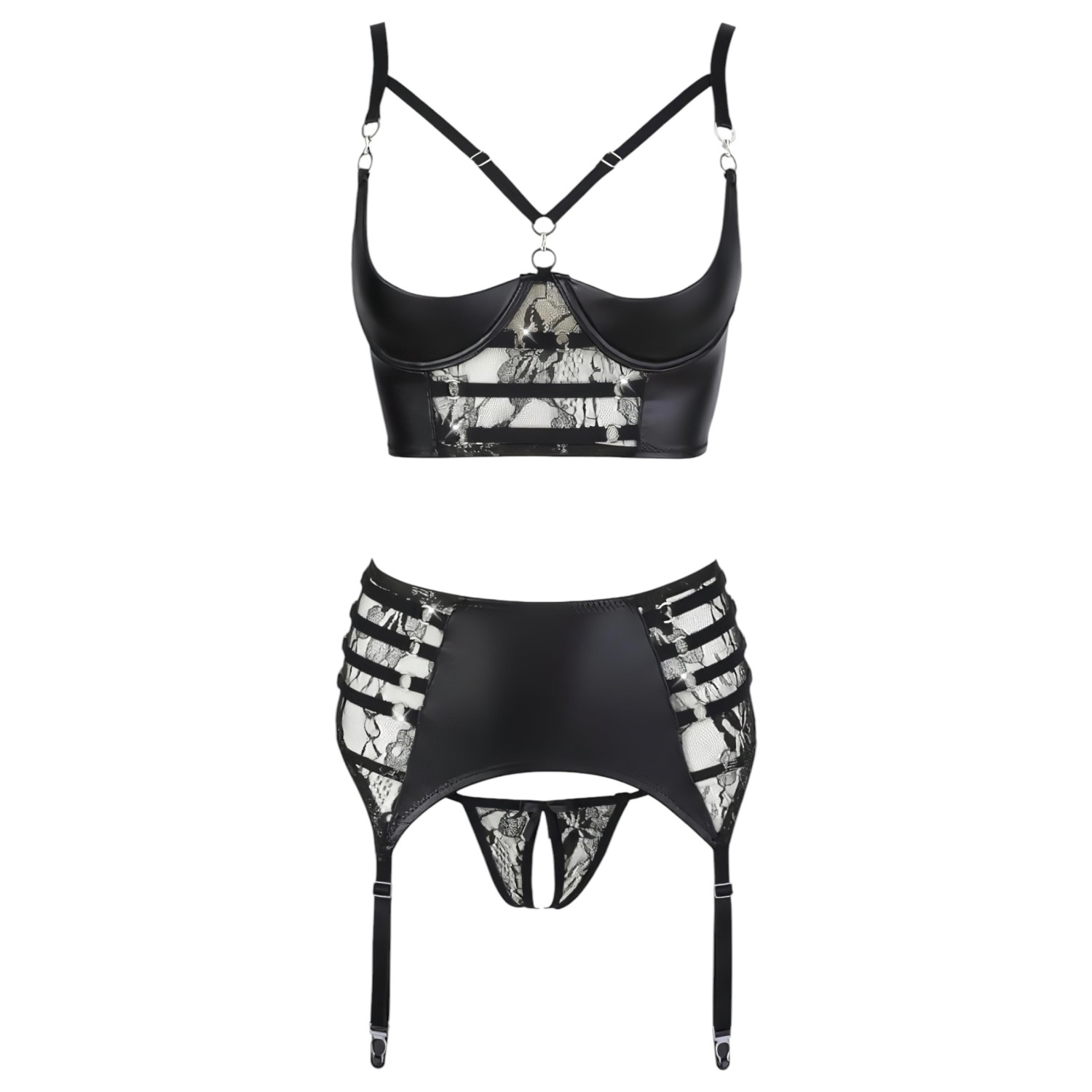 Abierta Fina - sieviešu mežģīņu apakšveļas komplekts ar siksniņām melns - 85B/L