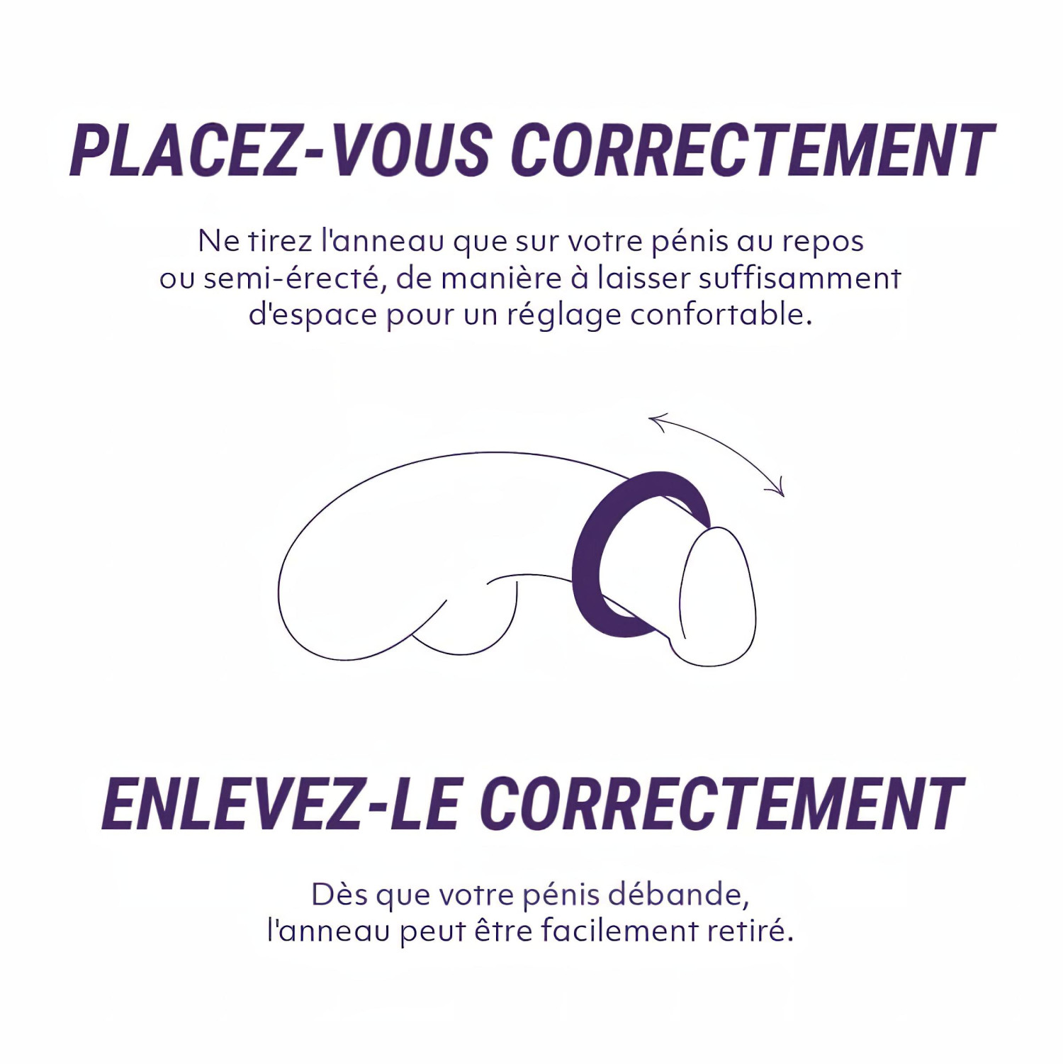 • Uzvelc gredzenu pie pilnīgas vai pusstingras erekcijas