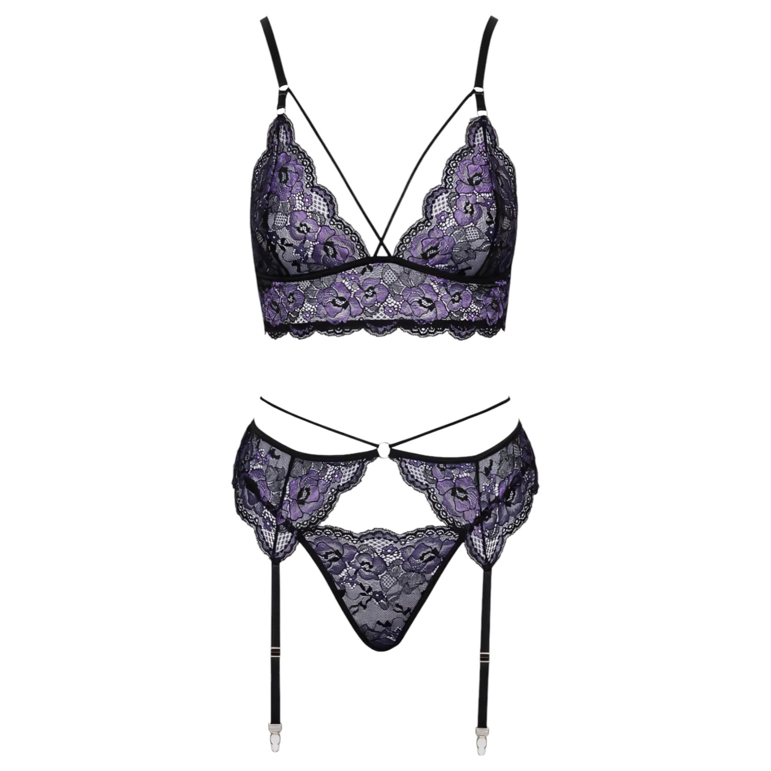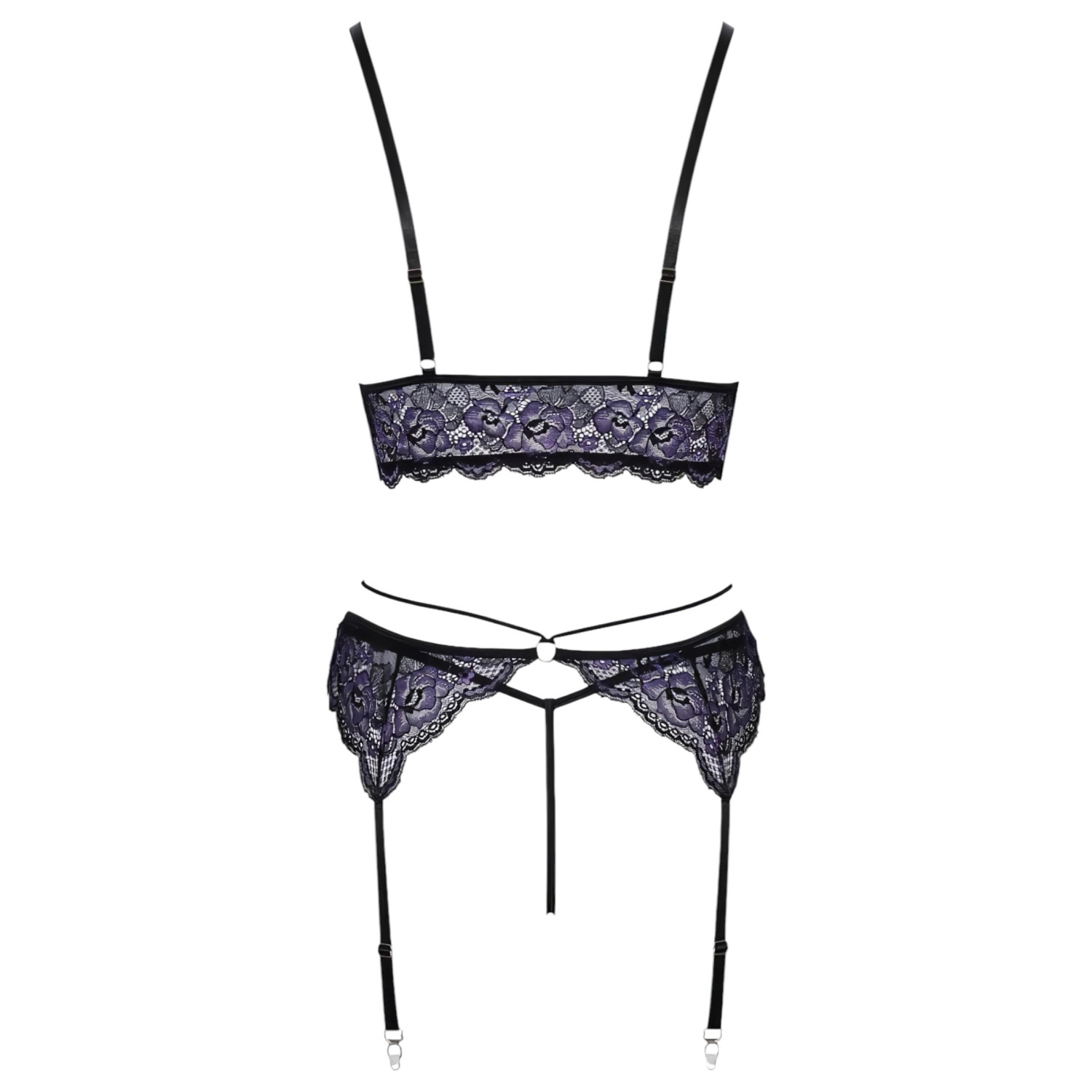 Viedokļi Cottelli - 3-daļīgs mežģīņu veļas komplekts (melni-violets) - XL