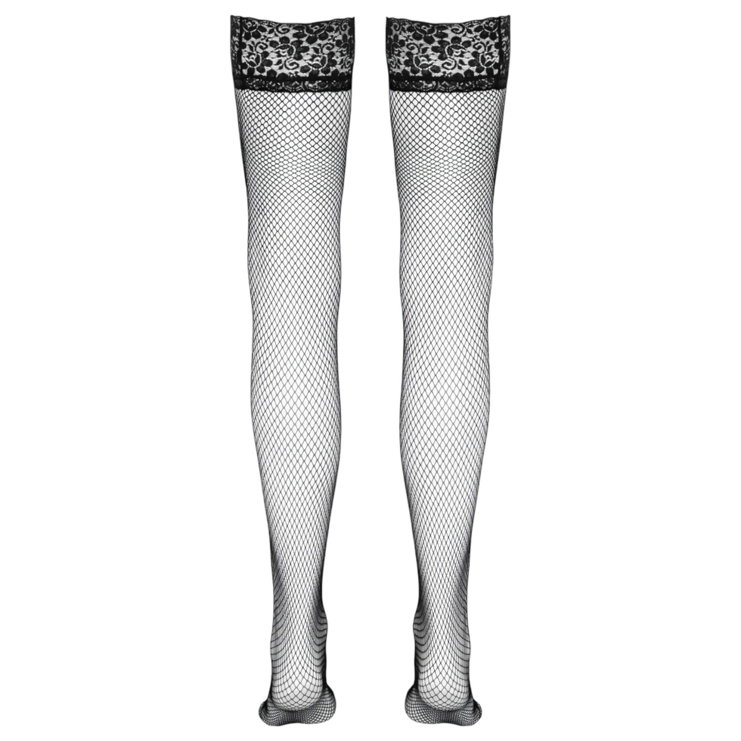 • 1 pāris augšstilba zeķu ar tīkliņveida un mežģīņu apdari (melns)