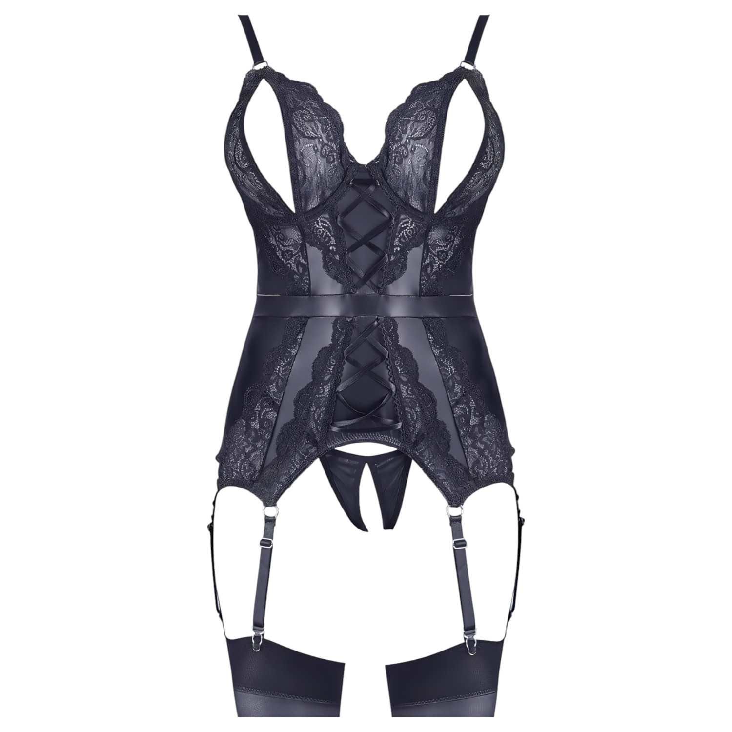 Cottelli - mežģīņu atvērtais tops un stringi (melni) - XL
