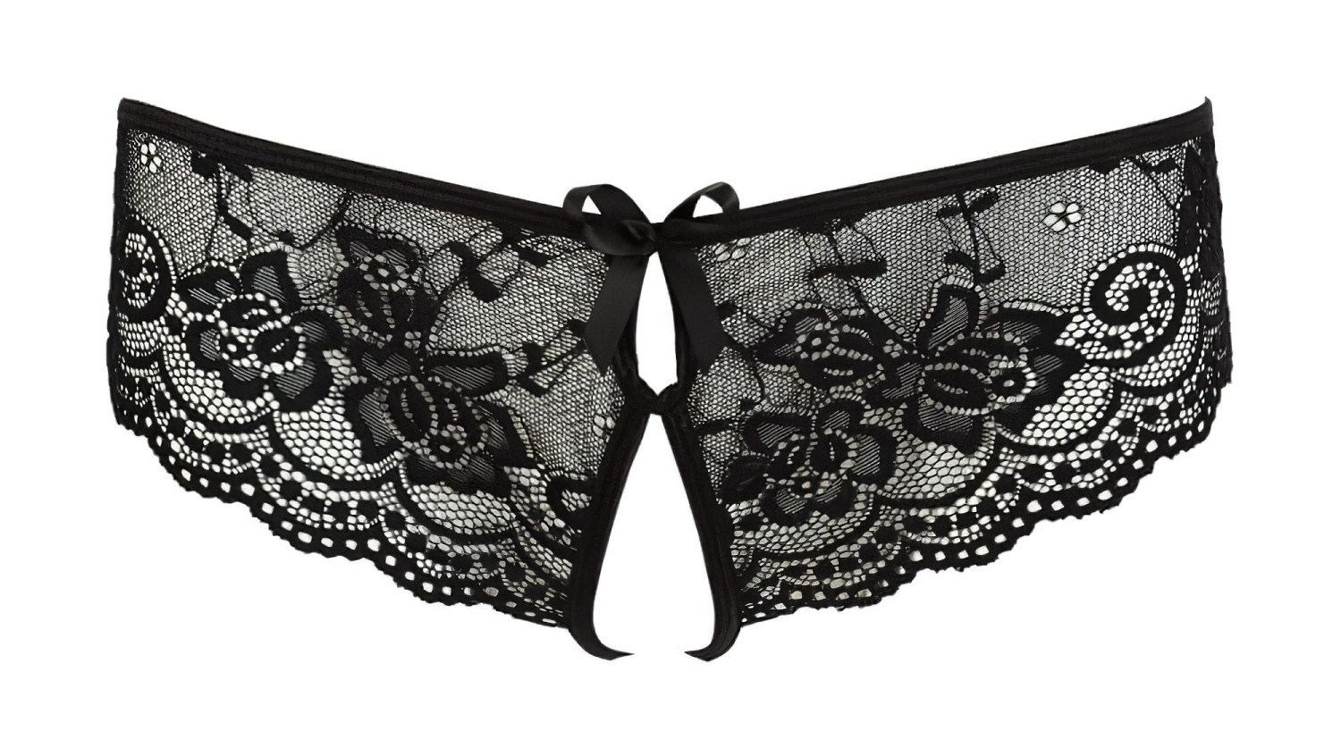 • 1 gabals melnas, atvērtas mežģīņu biksītes