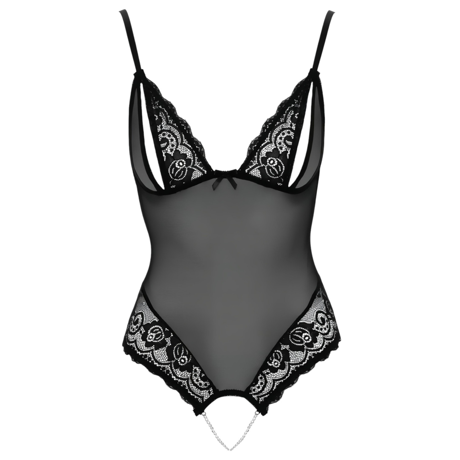 Cottelli - mežģīņu un pērļu atvērtais bodijs (melns)