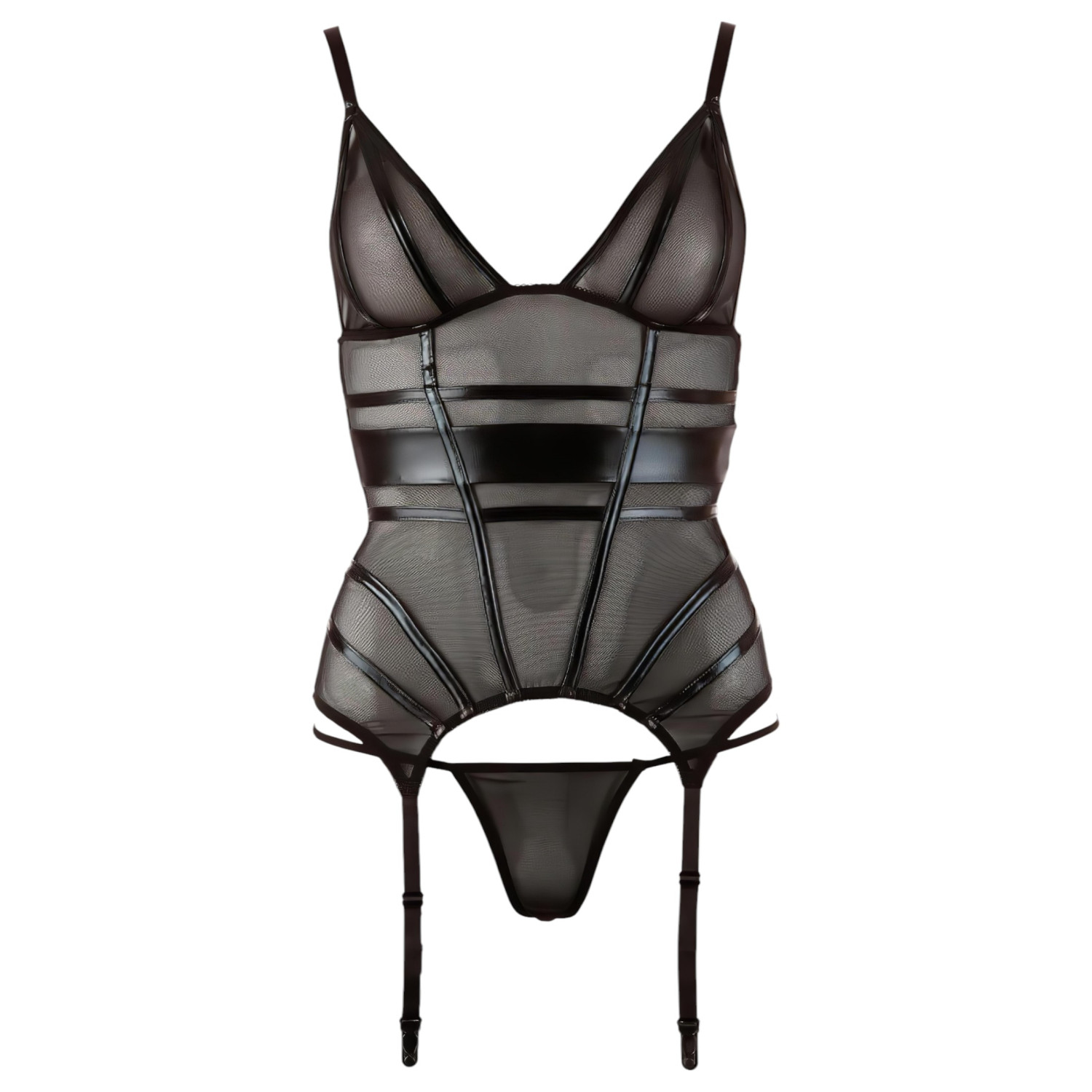 Šis seksīgais, caurspīdīgais zeķturu tops ar mirdzošām dekoratīvām joslām izceļ tavu pievilcību un sola karstu baudas mirkli!