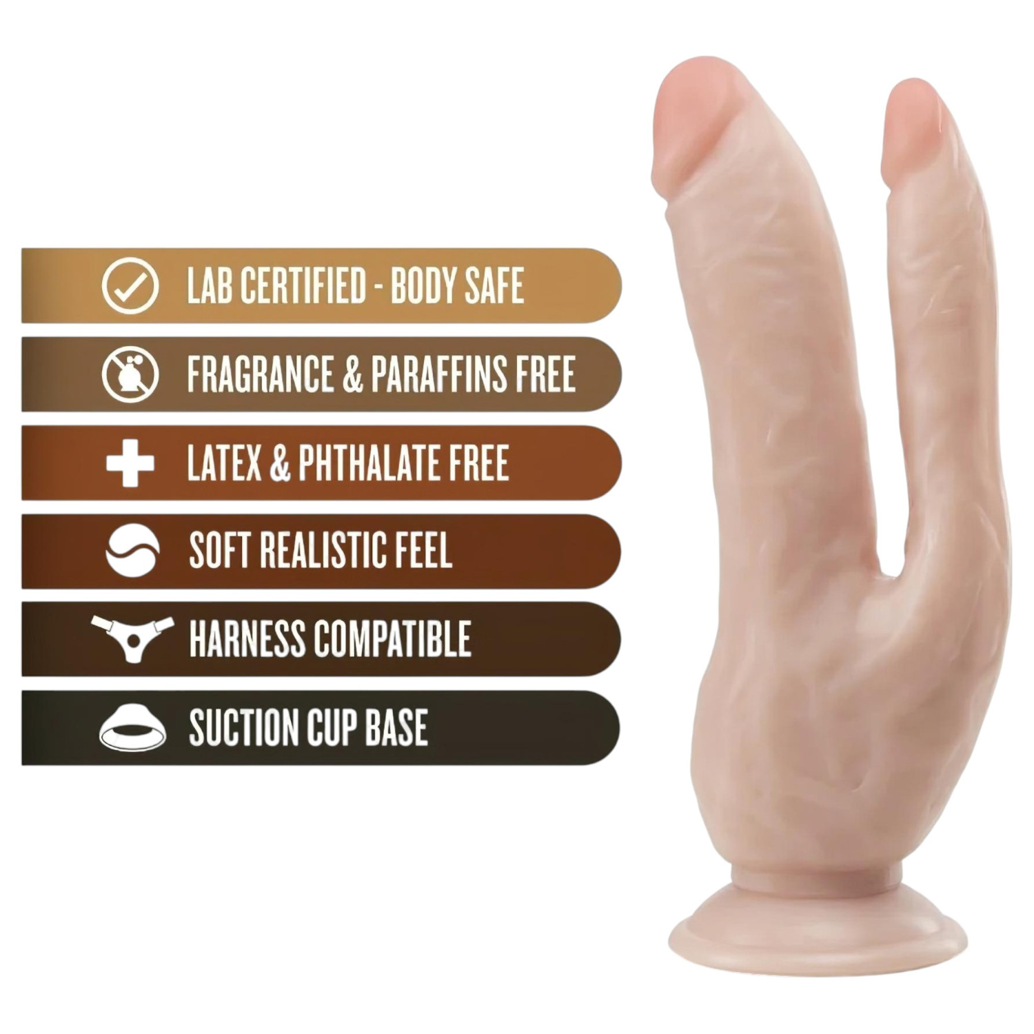 Šis reālistiskais dubultdildo ir ideāla izvēle tiem, kas vēlas izbaudīt dubultās penetrācijas aizraušanos. Mīkstā, ādas sajūta tiek lieliski apvienota ar piemērotu cietību, bet stabilais piesūcekņa pamats ļauj lietot to bez rokām uz jebkuras gludas, plaknes virsmas. Pateicoties ērtiem izmēriem, tas ir piemērots gan iesācējiem, gan pieredzējušiem lietotājiem.