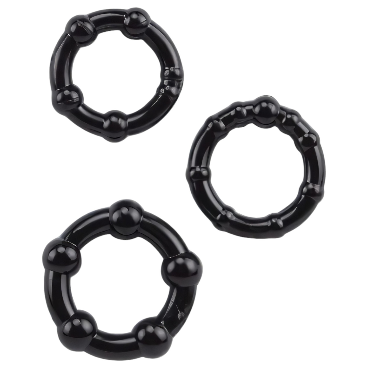 Trīsdaļīgs erekcijas gredzenu komplekts īpaši spēcīgam un noturīgam efektam, kā arī ideālai stingrībai!