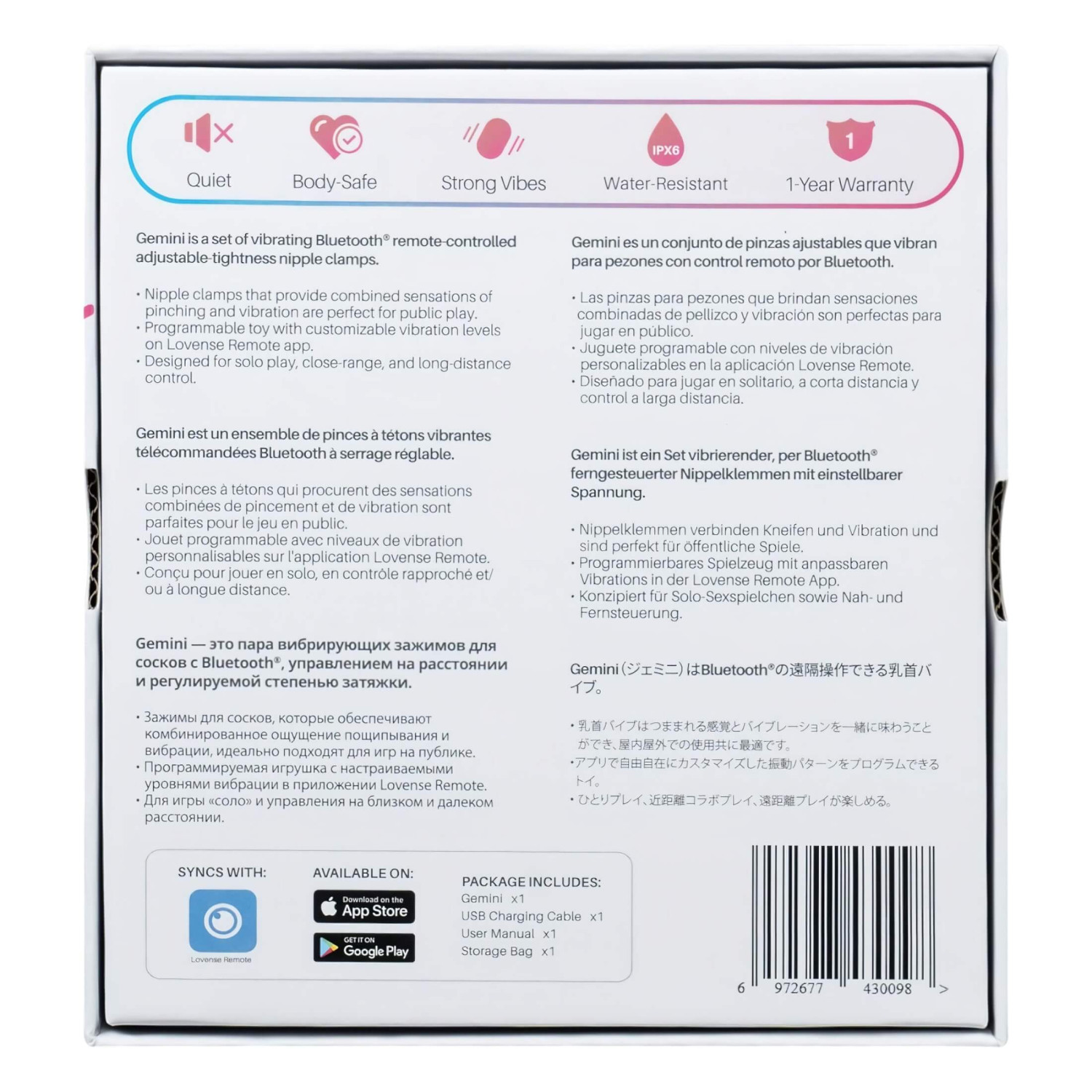 • Inovatīva tehnoloģija: Lovense Gemini ir pasaulē pirmie regulējamie, vibrējošie krūšu galiņu klipši, kurus vari pilnībā vadīt caur aplikāciju.