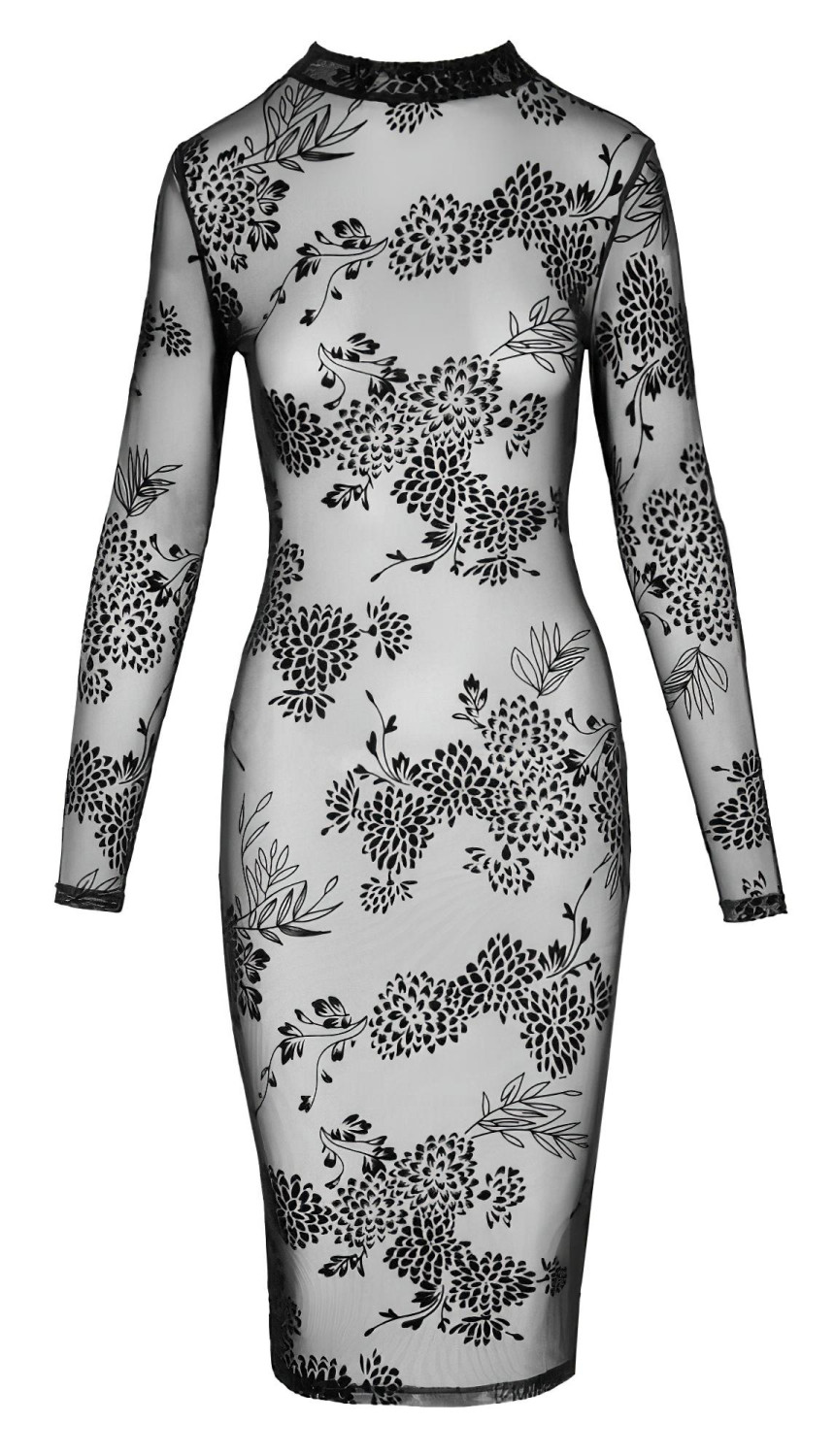 Viedokļi Noir - caurspīdīga ziedu kleita, garas piedurknes (melna)