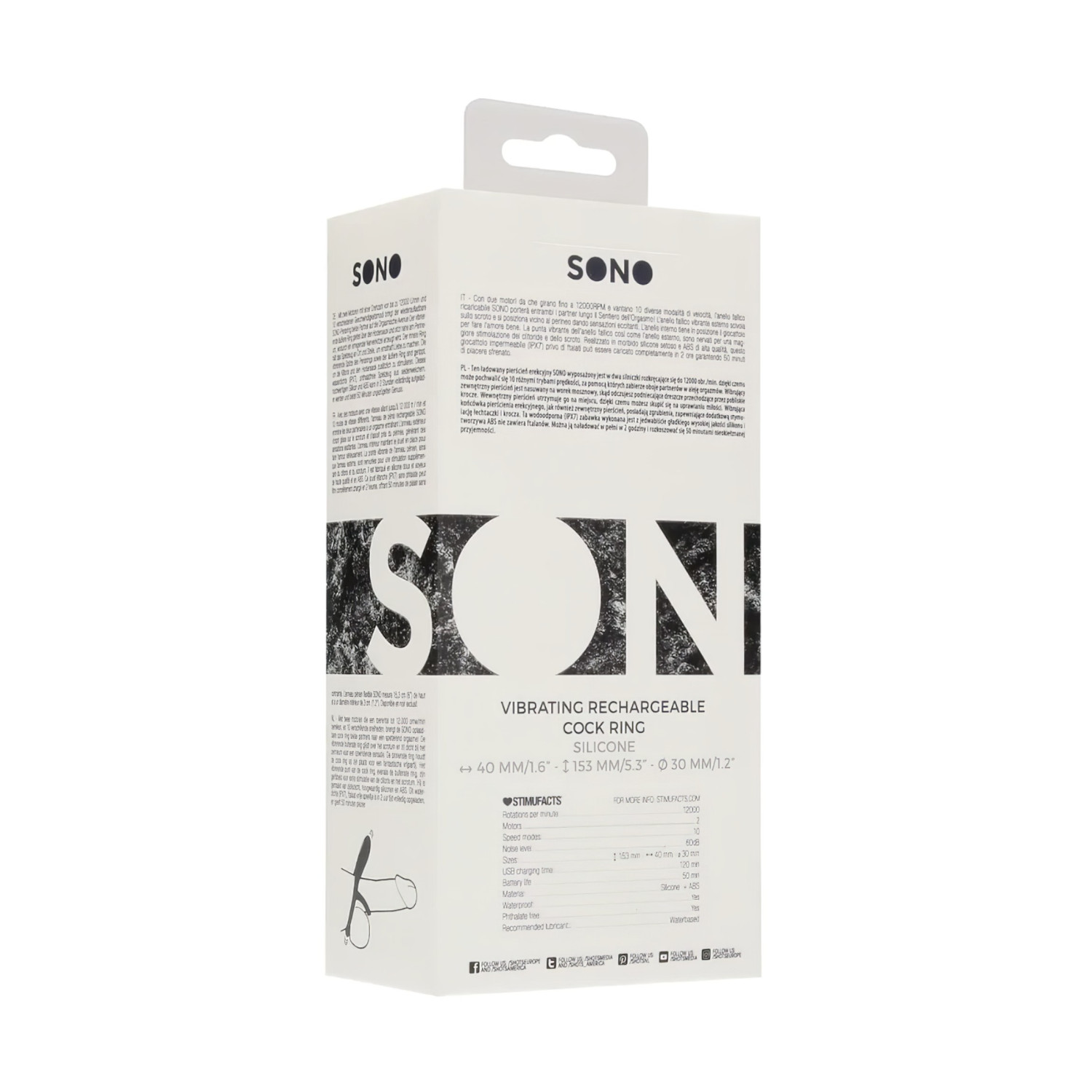• 1 gabals SONO uzlādējamais vibrējošais erekcijas gredzens