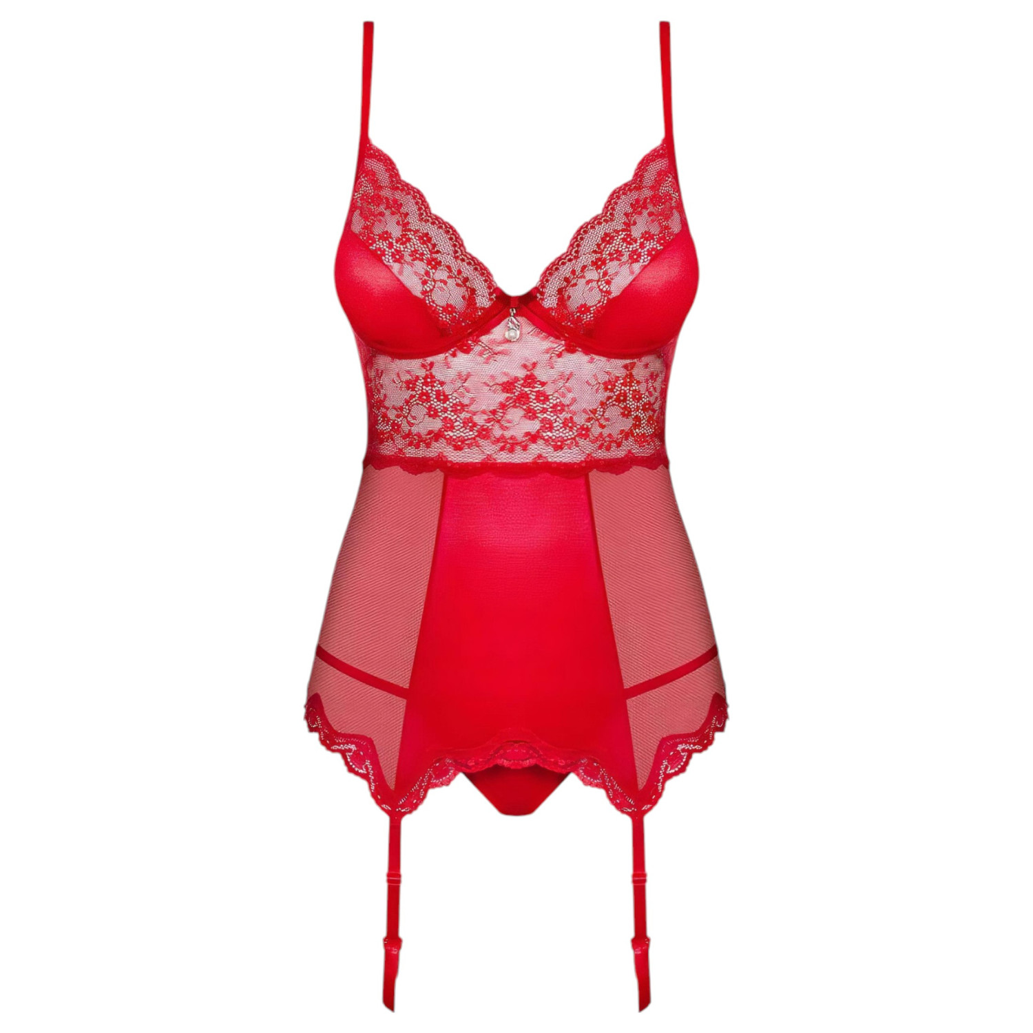 Viedokļi Obsessive Lovica - mežģīņu zeķtura tops un stringi (sarkani)