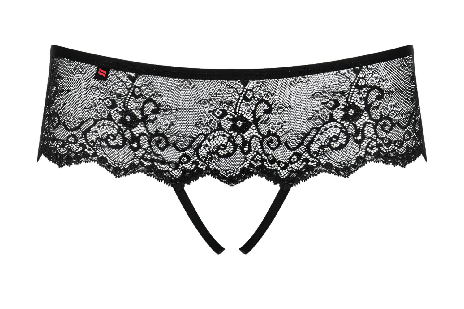 • 1 gab. atvērtā tipa mežģīņu stringbiksītes ar strasotu metāla bantīti aizmugurē