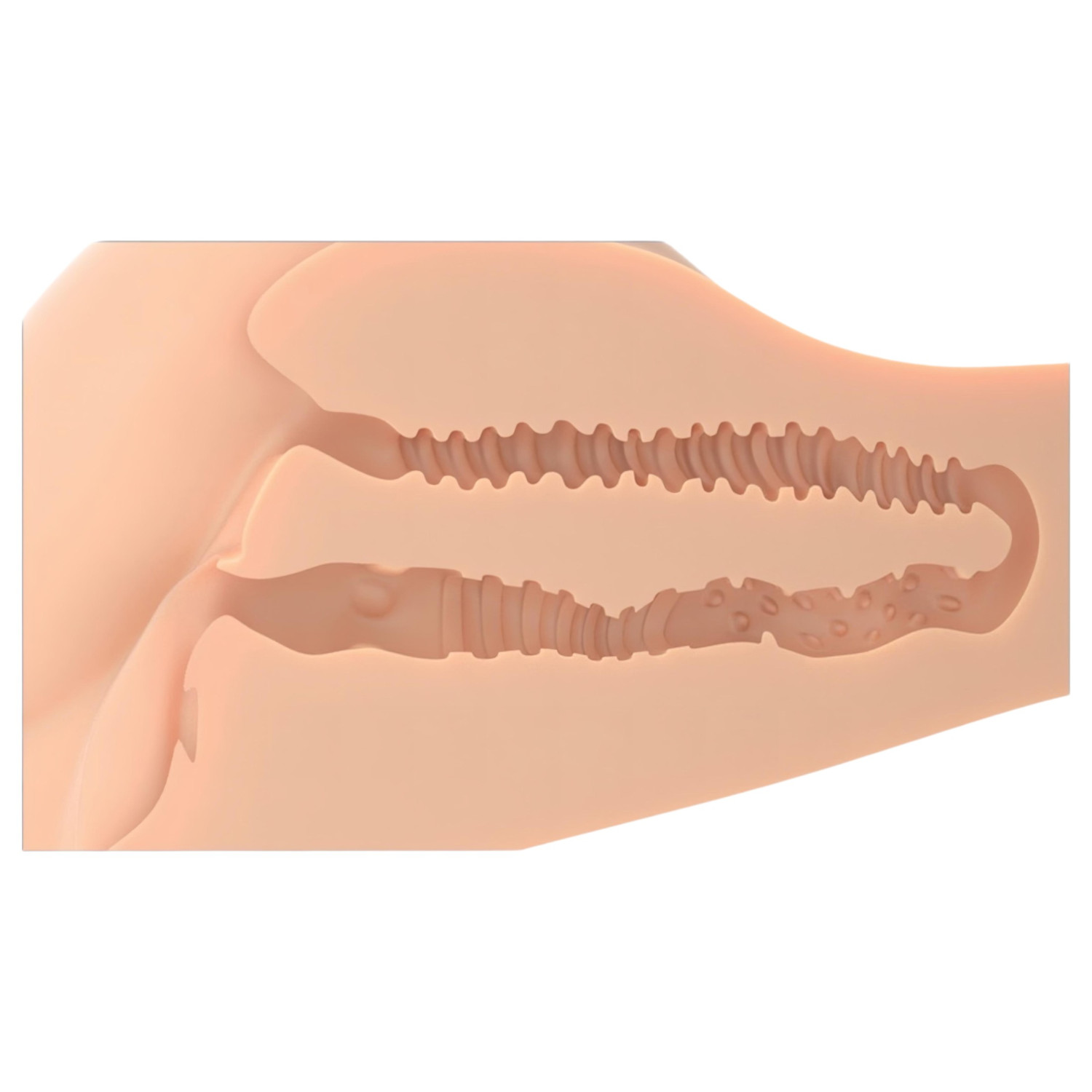 • 2 baudās ieejas - īpaši šaura vagīna un anālais kanāls ar dažādām stimulējošām tekstūrām iekšpusē