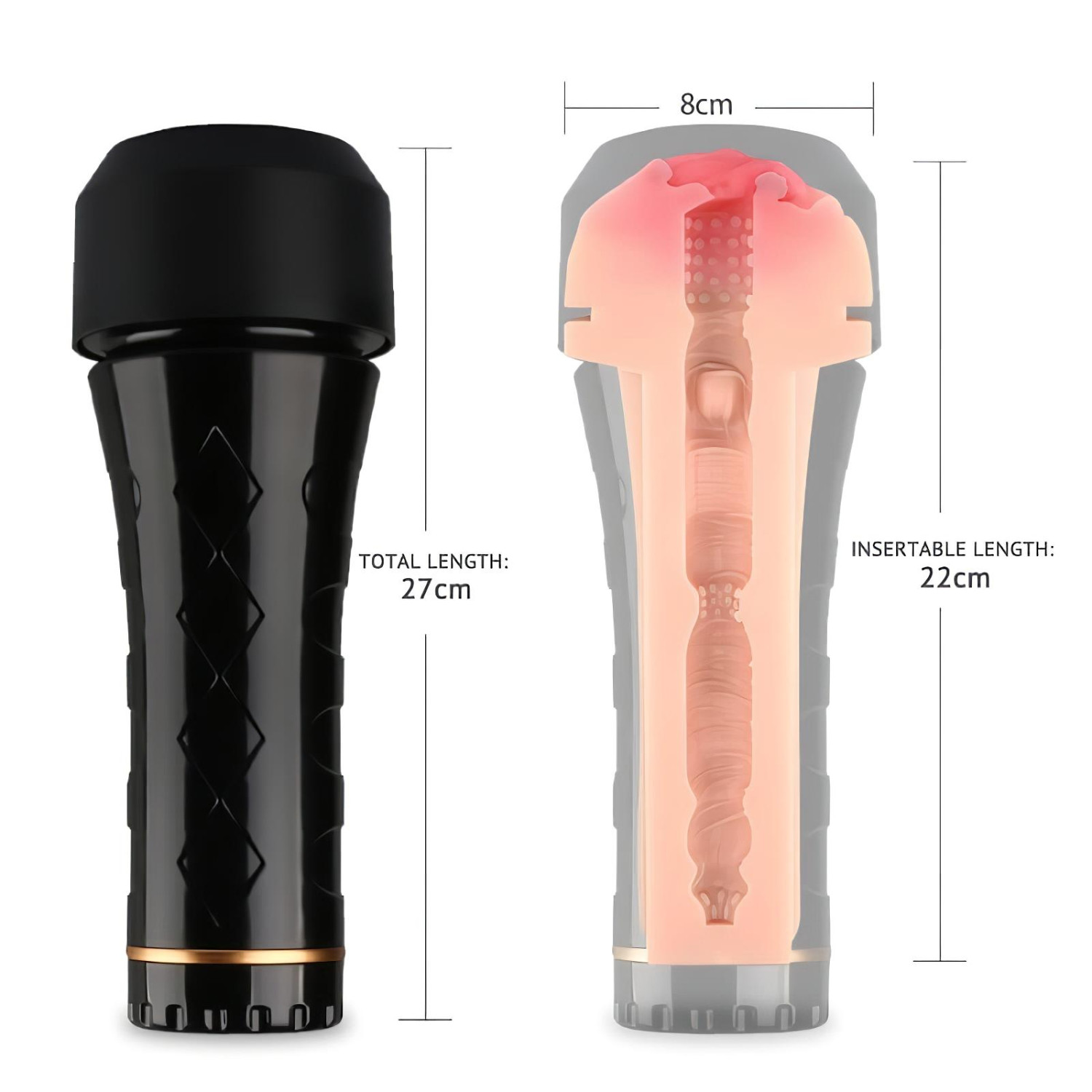 • Mīksto iekšpusi ērti izņemt no melnā futrāļa (abi gali noskrūvējami), kā arī vari to pirms lietošanas uzkarsēt siltā ūdenī vēl reālākai sajūtai.