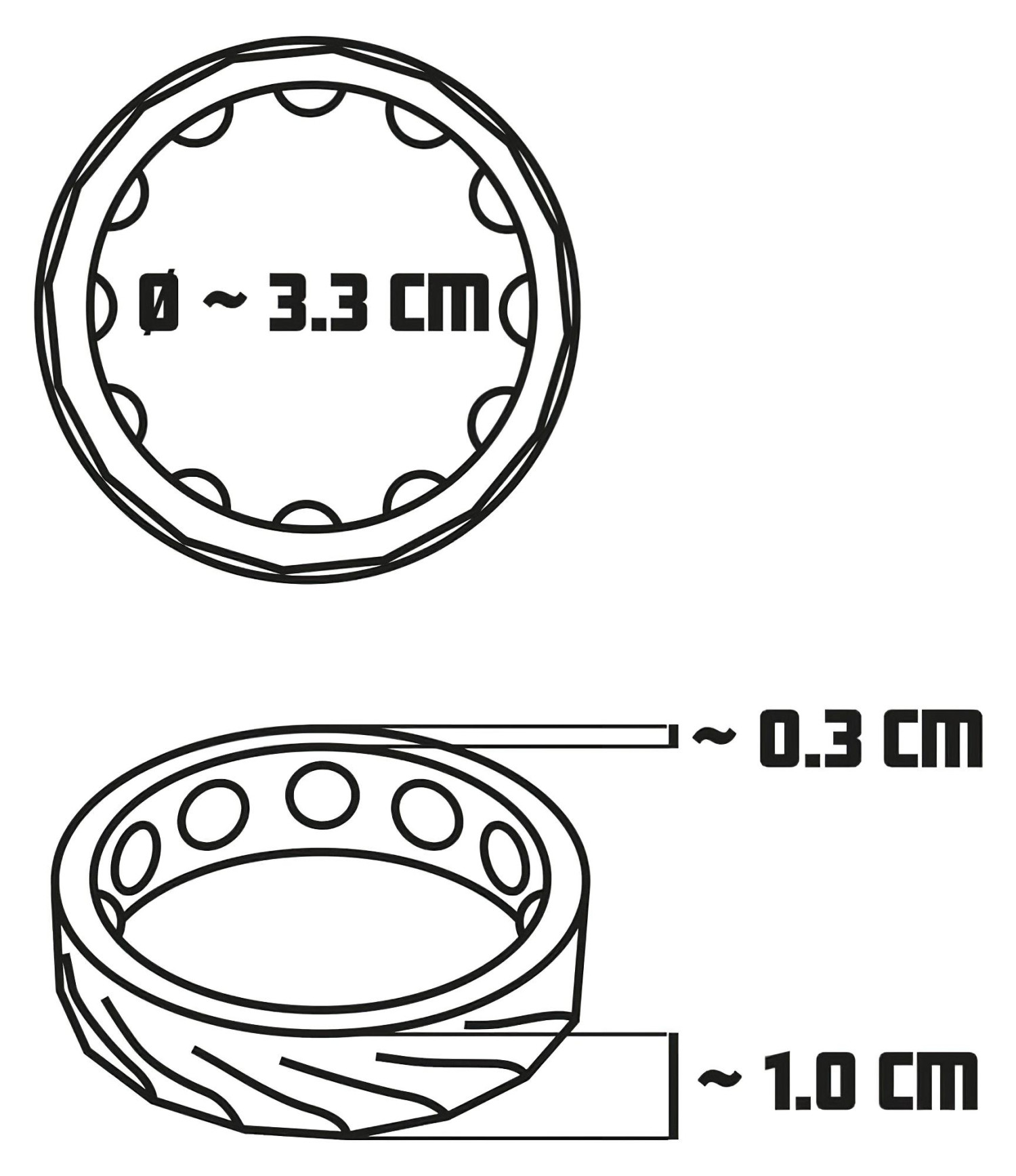 • gredzenu ārējais diametrs: 3,9 cm