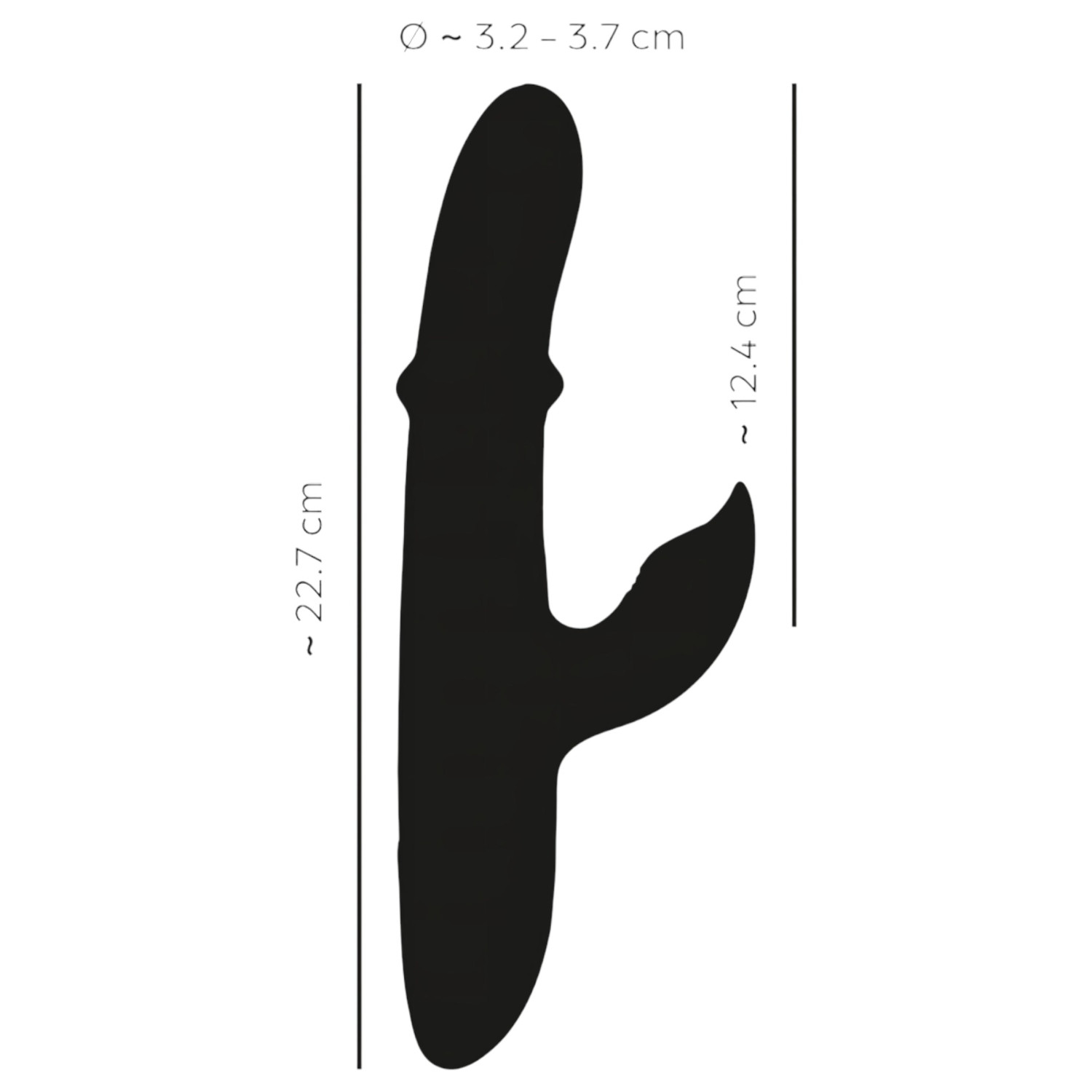 • Iebūvēts masāžas gredzens uz kātiņa, kas kustas augšup un lejup, nodrošinot intensīvu vaginālo masāžu